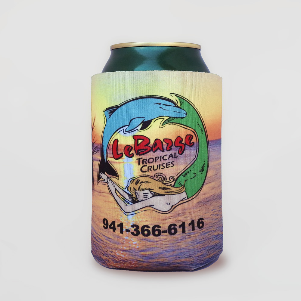 Keep your drinks cool and your memories warm with our LeBarge Tropical Cruises koozies. Both styles feature the LeBarge Tropical Cruises logo. Choose from a can koozie with a vibrant sunset design or an iced coffee coolie featuring a relaxing beach scene. Perfect for relaxing on the water, at the beach, or anywhere you want a touch of tropical flair.