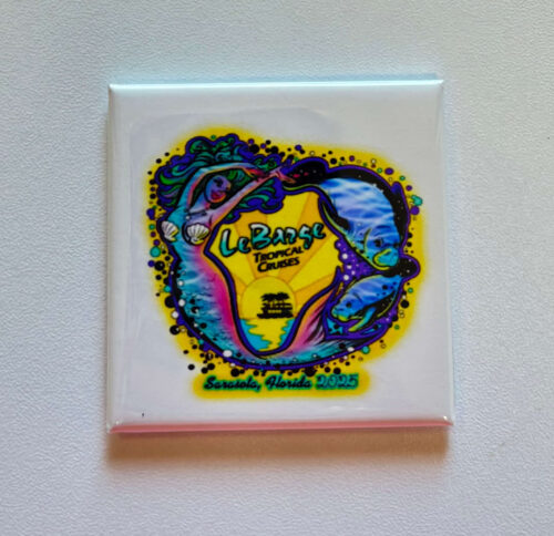 You can also choose a single-sided design featuring just the LeBarge Tropical Cruises logo or the Sarasota Bay Explorers logo. It’s machine washable, making it a convenient and stylish accessory for the beach, errands, or everyday use.